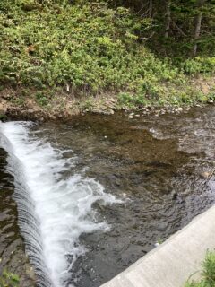 サクラマス 9/1 鬼志別川上流支流取水堰 鬼志別川上流部に合流する小支流の取水堰 この堰には魚道が有り小さな支流ですが多くのサクラマスが遡上産卵します、今年も無事に魚道を通り遡上しました。