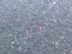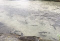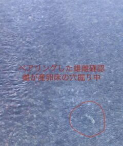 た。産卵床を守っているように見えますが、こんな状況で無事に産卵できたのか気になります。場所柄、観光客がたくさん見物してました。