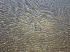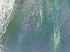 サケ 10/12 星置川ほしみ橋桁下 ほしみ橋桁の下では例年観察できますが今日は4尾が深さ20~30センチの深さの中で留まって、橋桁の下の範囲を泳いでいました。川底の状態も変わっていることもあって留まる場所も変わっていることも考えられます。川の水自体は大変きれいな星置川です。