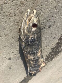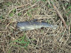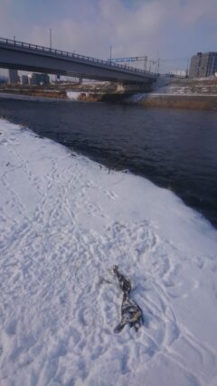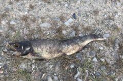 ↑ 080 サクラマス 10/16 創成川地下鉄中島公園駅そば コイの越冬池のすぐ上流でサクラマスの死体を見つけました。産卵後のメスのように見えるのですが、創成川のどこかで産卵できたのでしょうか?