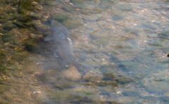 サクラマス 9/28 真駒内川 さけ科学館下流約100m 晴天で魚達が良く見えました。数は少なかったんですが、各所で産卵?しているようでした。魚と目が合ったような気がしてシャッターを切りました。