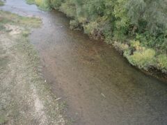 サケ 10/3 星置川337号線宮下橋直下 例年であれば宮下橋直下の深みで遡上を待つサケを多数観察出来ますが、今年は遡上が遅いのかこの場の深み、上流でも観察できる個体が非常に少ない状況です。