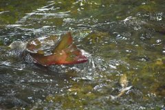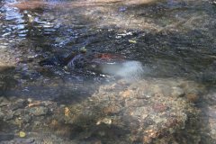 サクラマス 9/22 琴似発寒川平和サイクル橋直下 下流では群れていたのでまだ産卵は始まっていないのかなと思っていたら上流では各地で産卵開始 大きなオスも小さな残留オスも子孫を残すためにがんばりました
