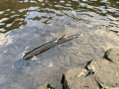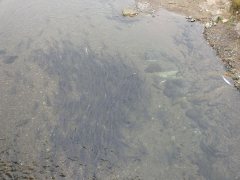 遡上できた個体もコンクリートの水路で産卵出来ず、ただただ漂っている様子でした。水深も浅く遡上できる場所も産卵できる場所もほとんどないのにこれだけの個体数があることに疑問を抱きました。
