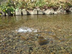 サケ 10/4 星置川星流橋上流10m 今年はサクラマスの遡上が圧倒的に多くサケ姿は少ない状況。