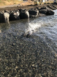 サケ 10/30 豊平川環状北大橋より下流400m 環状北大橋より下流にりっぱな産卵床を見つけました。近くにはメスザケもいました。近年、下流に産卵に適した礫が増えているように感じます。